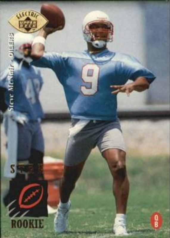 The Steve McNair 1995 Upper Deck #3 Electric Gold Rookie card is 1 of 7 Steve McNair's card variations in the 1995 Upper Deck set being tracked by Sports Card Investor, including #3 Base, #3 Electric, #HP8 Predictors: Award Winners, #HP12 Predictors: Award Winners, and #HP12 Predictors Exchange: Award Winners.