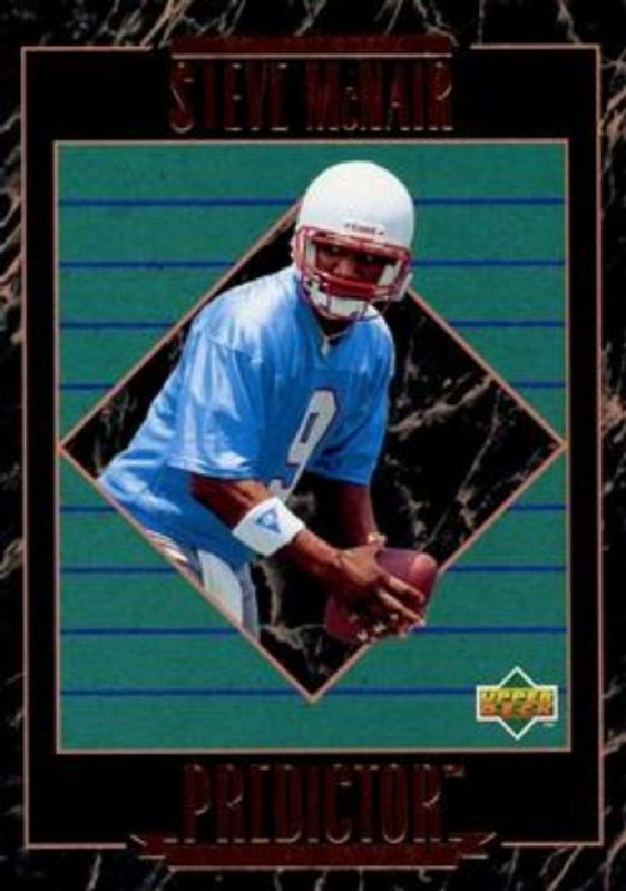 The Steve McNair 1995 Upper Deck #HP8 Predictors: Award Winners Rookie card is 1 of 7 Steve McNair's card variations in the 1995 Upper Deck set being tracked by Sports Card Investor, including Base, Electric, Electric Gold, Predictors: Award Winners, and Predictors Exchange: Award Winners.