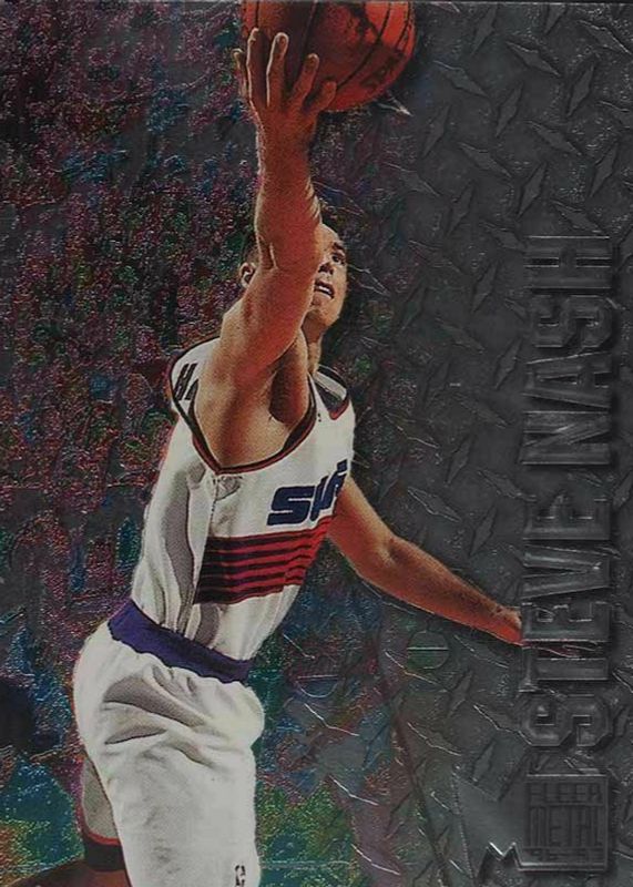 This card is 1 of 4 Steve Nash's card variations in the 1996 Metal set being tracked by Sports Card Investor, including Fresh Foundation, #138 Fresh Foundation, and #205 Precious Metal.