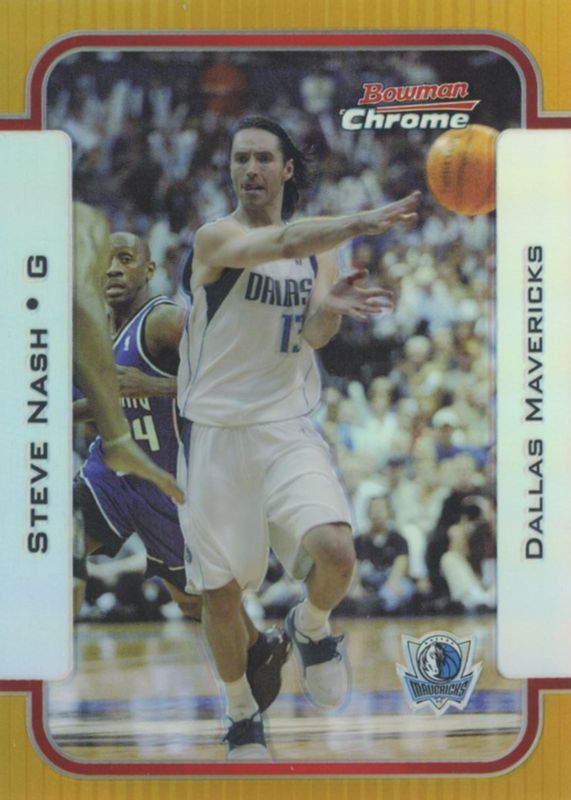 The Steve Nash 2003 Bowman #66 Chrome - Gold Refractor /50 card in Raw condition has not changed in price in the last 30 days and was last sold for $250.00 .