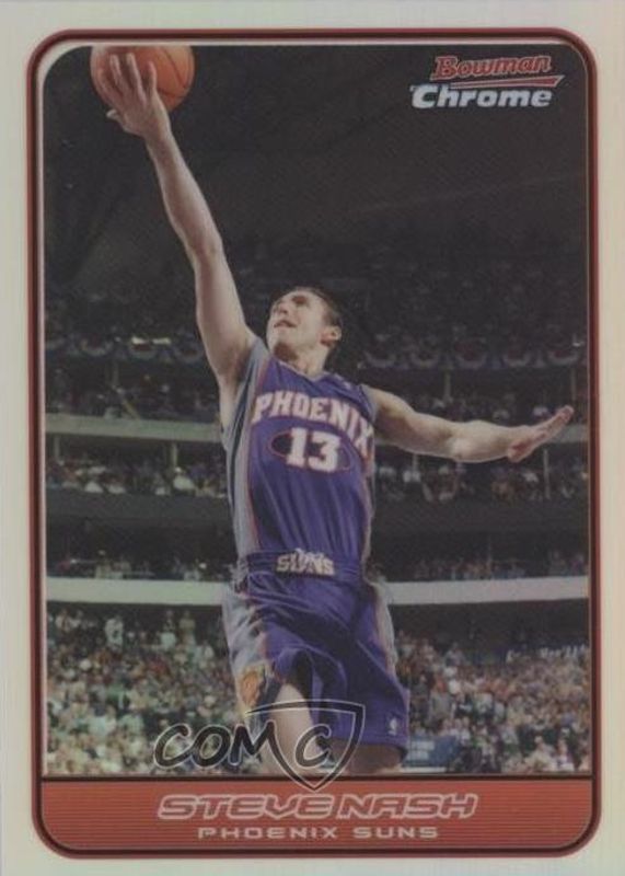 The Steve Nash 2006 Bowman #106 Chrome - Refractor /249 card in Raw condition has not changed in price in the last 30 days and was last sold for $10.00 .