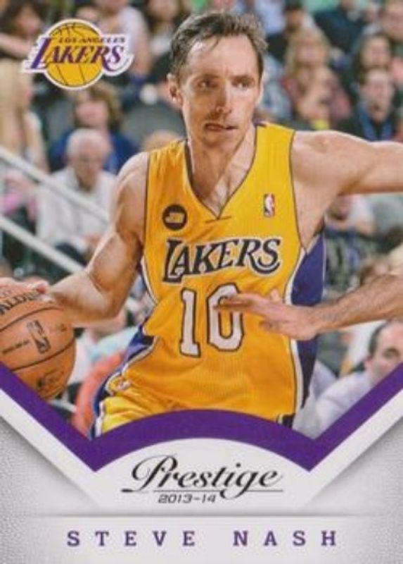 The Steve Nash 2013 Prestige #88 Base card is 1 of 9 Steve Nash's card variations in the 2013 Prestige set being tracked by Sports Card Investor, including Bonus Shots Blue, Bonus Shots Red, Bonus Shots Silver, Bonus Shots Gold /10, and Bonus Shots Green /5.