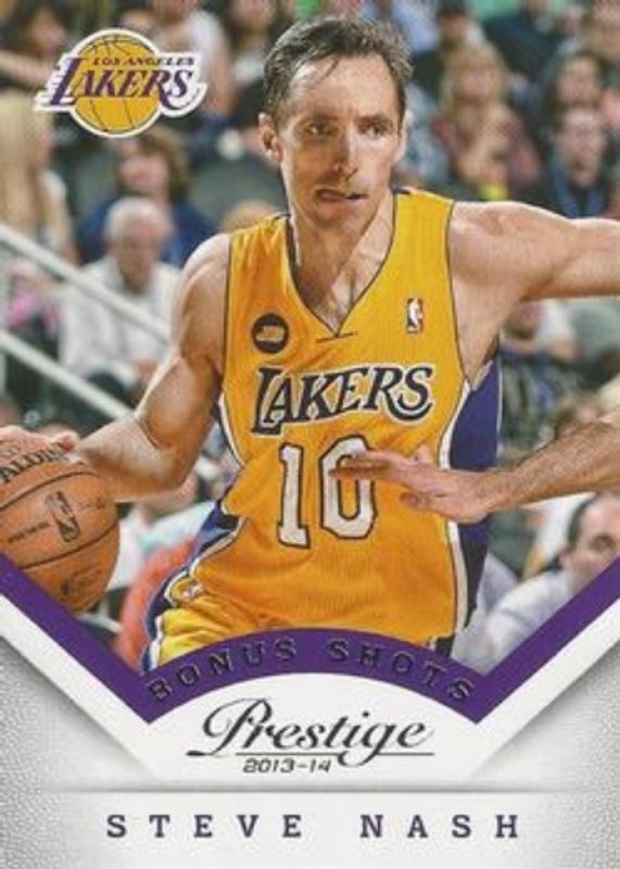 The Steve Nash 2013 Prestige #88 Bonus Shots Silver card is 1 of 9 Steve Nash's card variations in the 2013 Prestige set being tracked by Sports Card Investor, including Base, Bonus Shots Blue, Bonus Shots Red, Bonus Shots Gold /10, and Bonus Shots Green /5.