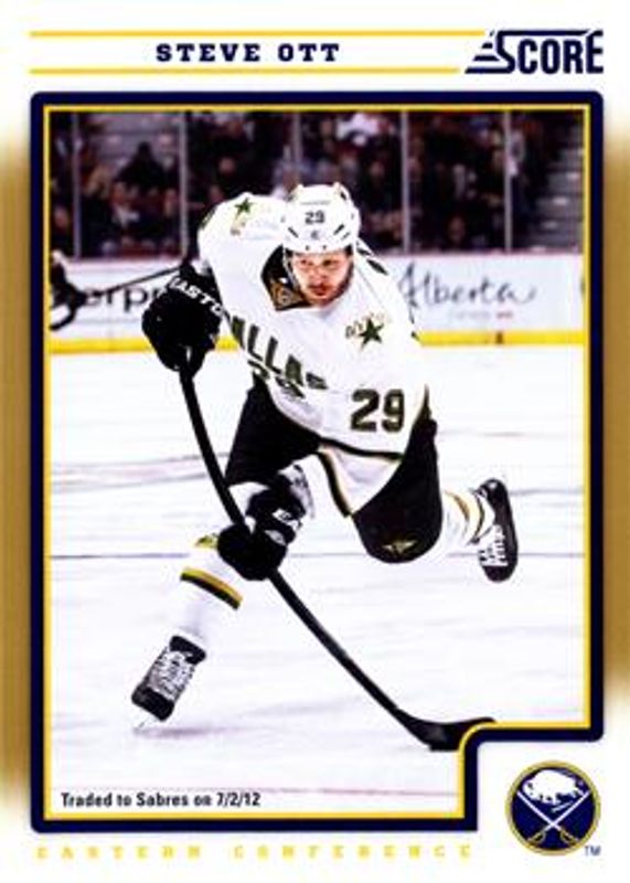 The Steve Ott 2012 Score #75 Gold Rush card is 1 of 5 Steve Ott's card variations in the 2012 Score set being tracked by Sports Card Investor, including Base, Black Ice, Check It, and Signatures.
