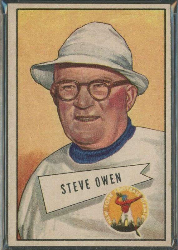 Steve Owen's Football cards are available in at least 3 sets. Steve Owen's biggest 7-day price movers are 1952 Bowman Large #4 Base, 1952 Bowman Small #4 Base, and 2013 National Treasures #49 HOF 50th Anniversary Souvenir Cuts /1.