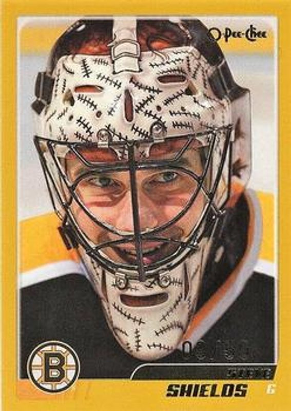 The Steve Shields 2003 O-Pee-Chee #64 Gold /50 card is 1 of 4 Steve Shields' card variations in the 2003 O-Pee-Chee set being tracked by Sports Card Investor, including Base, Blue /500, and Red /100.