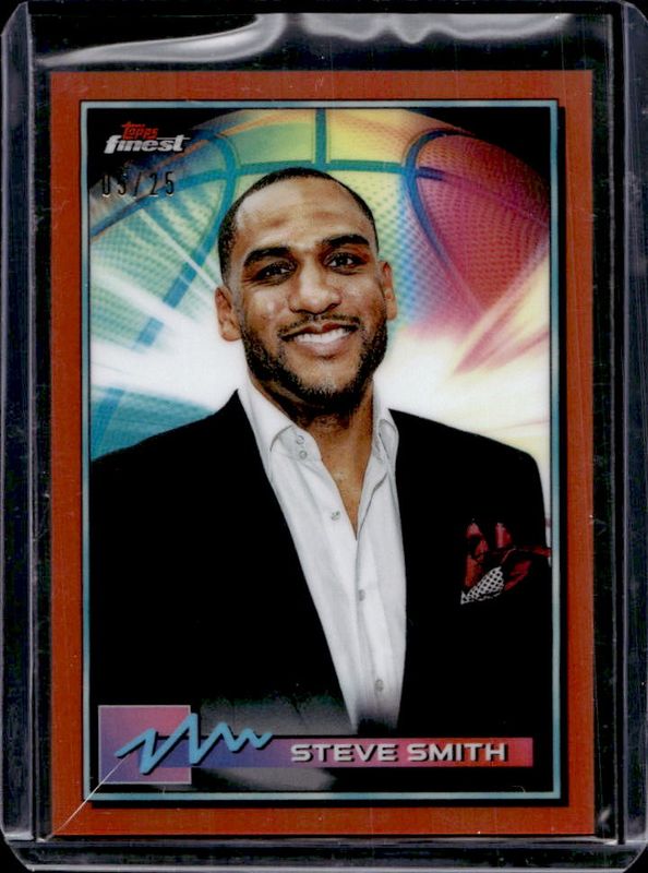 The Steve Smith (NBA) 2021 Topps Finest #51 Orange /25 card is 1 of 23 Steve Smith (NBA)'s card variations in the 2021 Topps Finest set being tracked by Sports Card Investor, including Base, Refractor, Atomic /299, Purple /250, and Speckle /199.