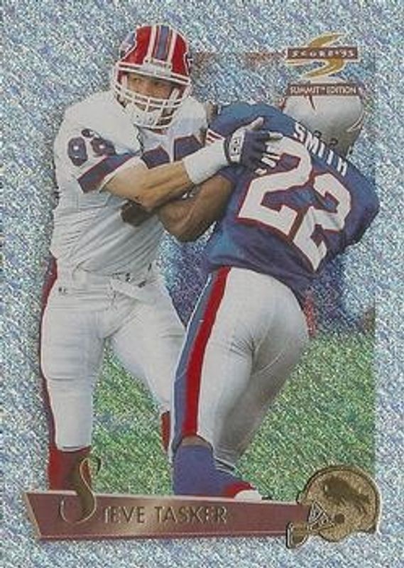 The Steve Tasker 1995 Score Summit #112 Ground Zero card is 1 of 2 Steve Tasker's card variations in the 1995 Score Summit set being tracked by Sports Card Investor, including Base.