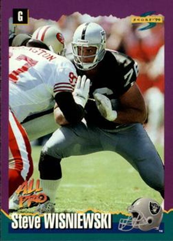 The Steve Wisniewski 1994 Score #20 Base card is 1 of 2 Steve Wisniewski's card variations in the 1994 Score set being tracked by Sports Card Investor, including Gold Zone.