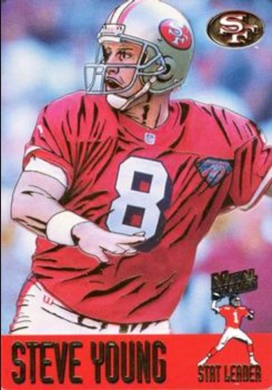 The Steve Young 1994 Action Packed #SL1 Prototypes card is 1 of 11 Steve Young's card variations in the 1994 Action Packed set being tracked by Sports Card Investor, including #184 Base, #108 Base, #G18 24K Gold, #G54 24K Gold, and #108 Braille.