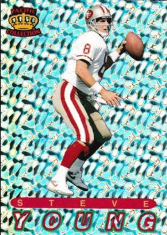 The Steve Young 1994 Pacific Prisms #126 Base card is 1 of 2 Steve Young's card variations in the 1994 Pacific Prisms set being tracked by Sports Card Investor, including Gold.