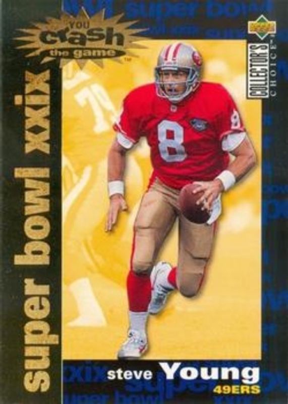 Steve Young 1995 Upper Deck Collector's Choice #SB1 You Crash the Game Super Bowl XXIX Exchange RAW Price Guide
