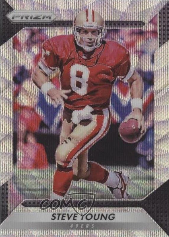 This card is 1 of 21 Steve Young's card variations in the 2016 Prizm set being tracked by Sports Card Investor, including Flash, Green, Pink, Red White Blue Disco, and Silver.