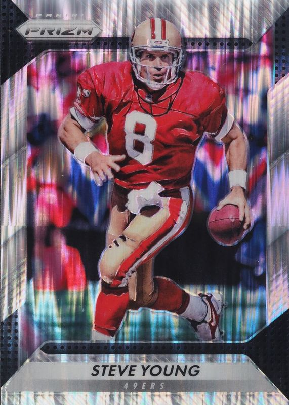 This card is 1 of 21 Steve Young's card variations in the 2016 Prizm set being tracked by Sports Card Investor, including Green, Pink, Red White Blue Disco, Silver, and Orange /299.