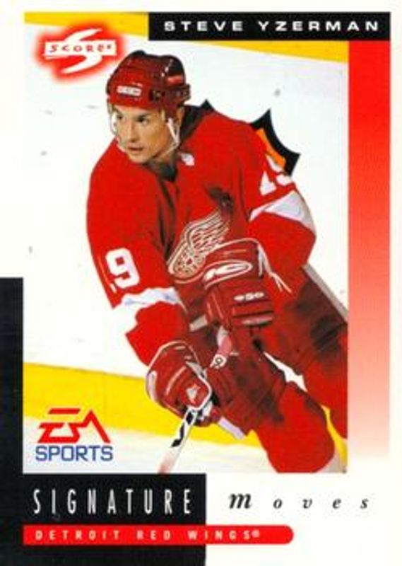 The Steve Yzerman 1997 Score #263 Base card is 1 of 8 Steve Yzerman's card variations in the 1997 Score set being tracked by Sports Card Investor, including Base, Artist's Proofs, Golden Blades, Promos, and Epix Emerald.