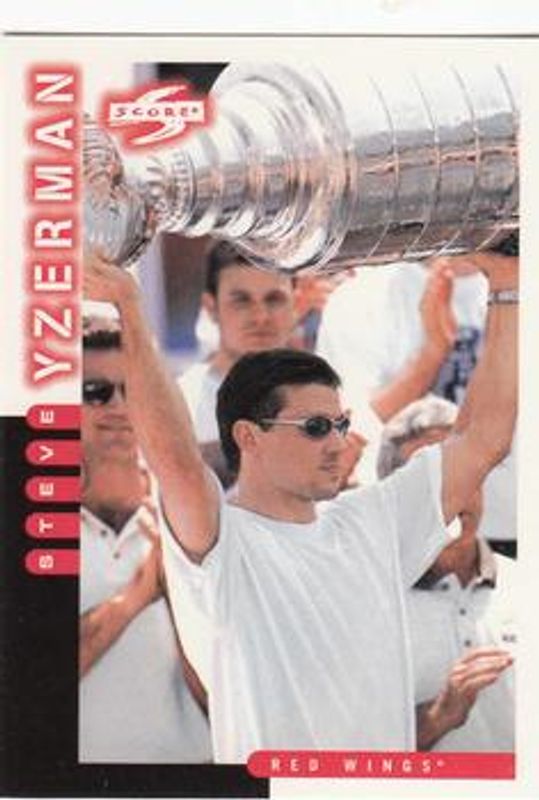 The Steve Yzerman 1997 Score #86 Base card is 1 of 8 Steve Yzerman's card variations in the 1997 Score set being tracked by Sports Card Investor, including Base, Artist's Proofs, Golden Blades, Promos, and Epix Emerald.
