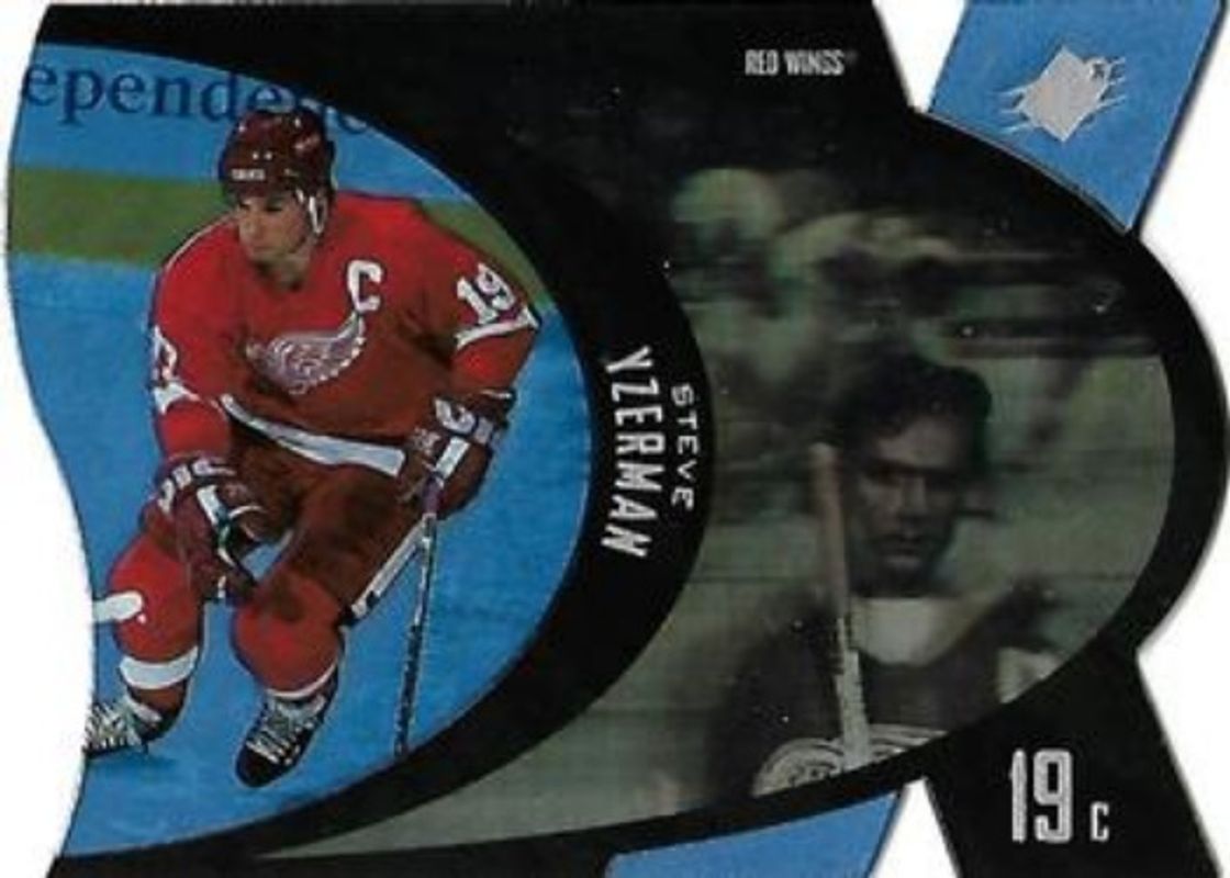 The Steve Yzerman 1997 SPx #14 Base card is 1 of 7 Steve Yzerman's card variations in the 1997 SPx set being tracked by Sports Card Investor, including Bronze, DuoView, Gold, Grand Finale, and Silver.