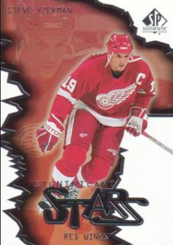 The Steve Yzerman 2000 SP Authentic #ST3 Significant Stars card is 1 of 11 Steve Yzerman's card variations in the 2000 SP Authentic set being tracked by Sports Card Investor, including #31 Base /900, #31 Buyback Autographs /154, #34 Buyback Autographs /154, #47 Buyback Autographs /154, and #FX7 Buyback Autographs /154.