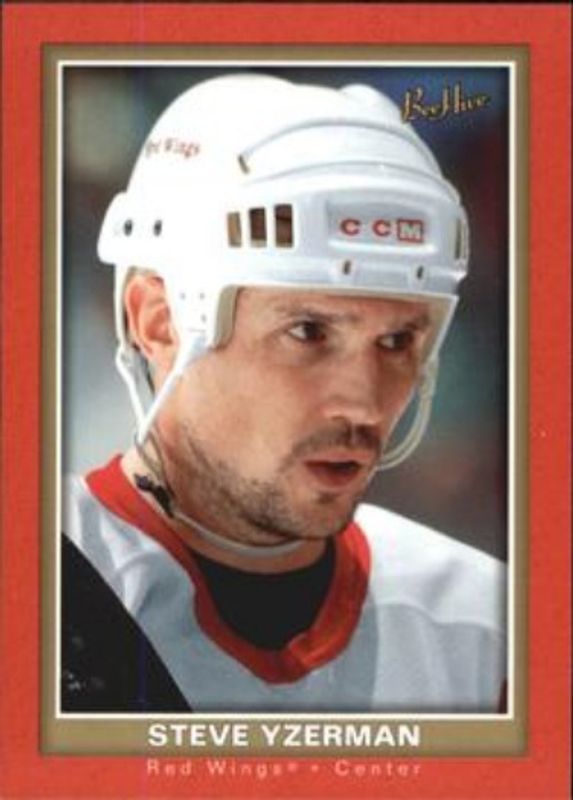 The Steve Yzerman 2005 Upper Deck Beehive #31 Red card is 1 of 8 Steve Yzerman's card variations in the 2005 Upper Deck Beehive set being tracked by Sports Card Investor, including #31 Base, #187 Base, #31 Beige, #31 Blue, and #31 Gold.