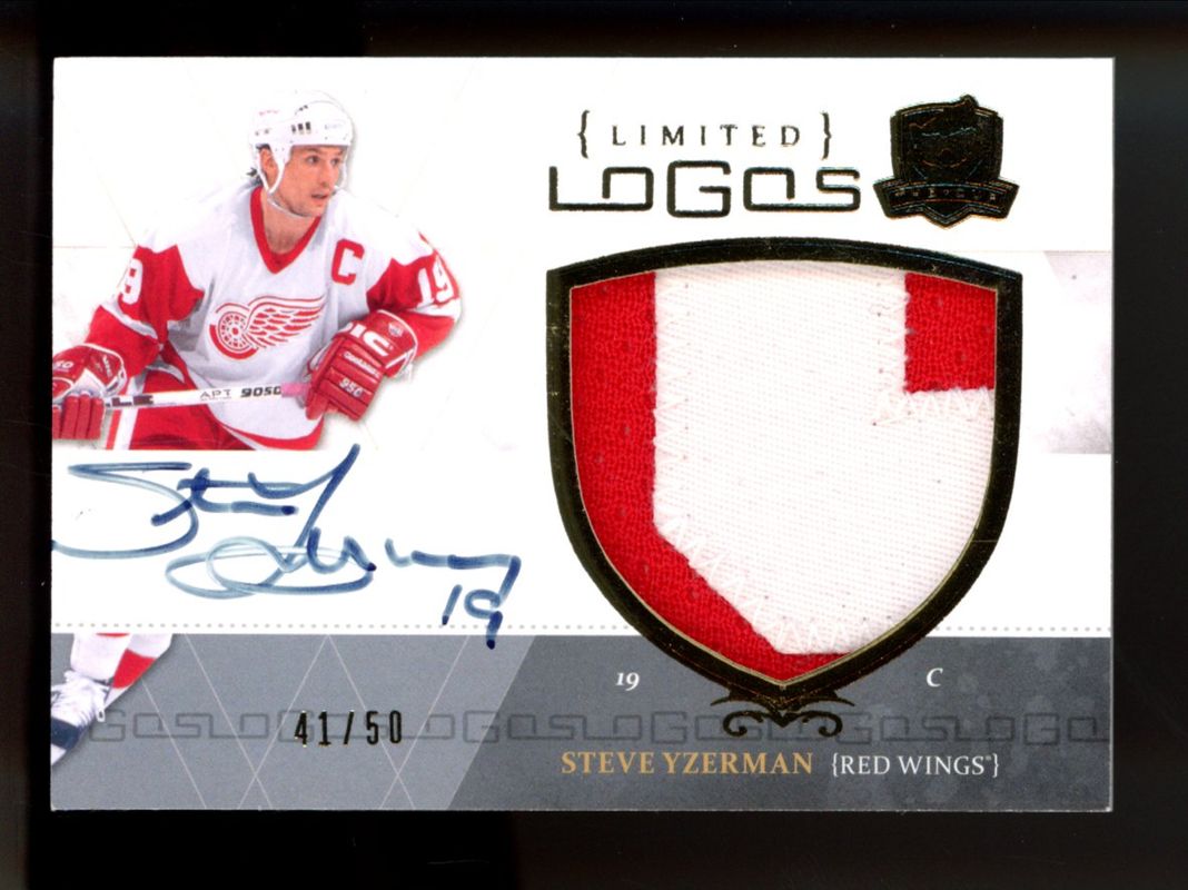 The Steve Yzerman 2010 Upper Deck The Cup #LL-SY Limited Logos Autographs /50 card is 1 of 21 Steve Yzerman's card variations in the 2010 Upper Deck The Cup set being tracked by Sports Card Investor, including Base /199, Gold /25, Gold Rainbow /25, Black /1, and Printing Plates Black /1.