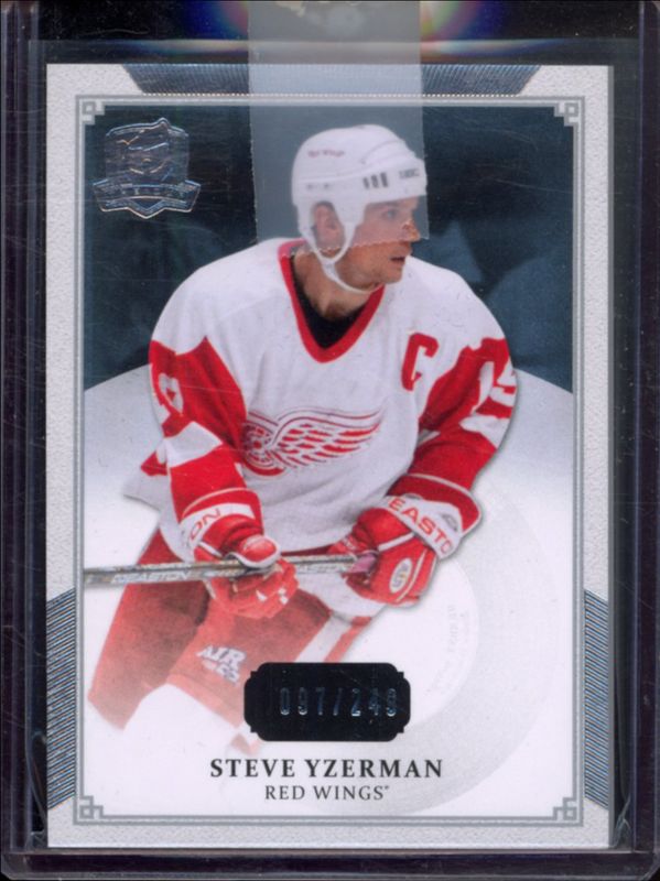 The Steve Yzerman 2014 Upper Deck The Cup #32 Base /249 card is 1 of 21 Steve Yzerman's card variations in the 2014 Upper Deck The Cup set being tracked by Sports Card Investor, including Artist Proof Limited Logos, Gold Spectrum Autographs /25, Gold /10, Gold Foil /10, and Red /3.