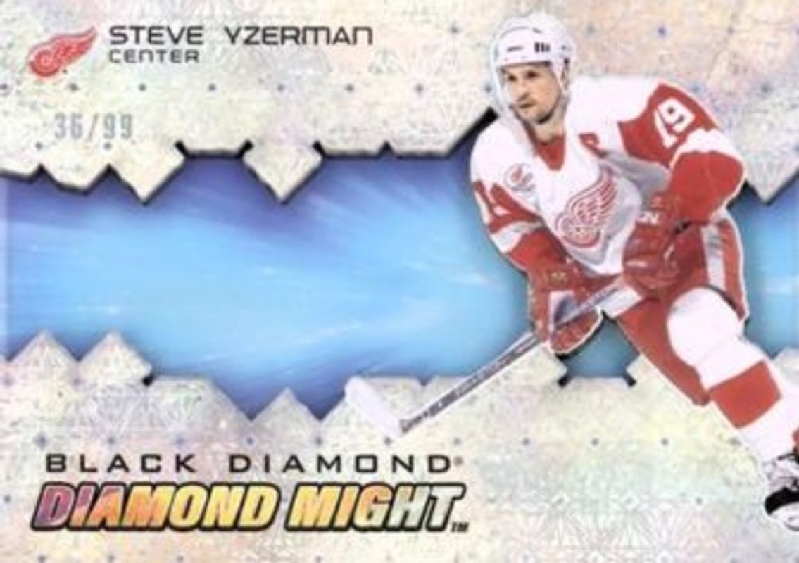The Steve Yzerman 2023 Upper Deck Black Diamond #DM-SY Diamond Might /99 card is 1 of 19 Steve Yzerman's card variations in the 2023 Upper Deck Black Diamond set being tracked by Sports Card Investor, including Base /349, Red /75, Blue /25, Pure Black Auto /25, and Green /10.
