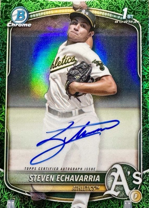 2025 Bowman Steven Echavarria Chrome Auto Green Grass Refractor 1st #97/99