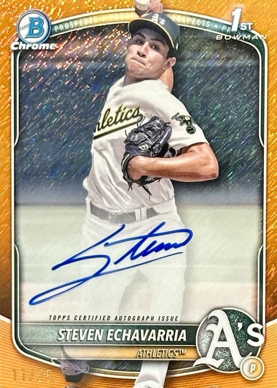 2025 Bowman Chrome 1st STEVEN ECHAVARRIA Orange Shimmer Auto /25 ATHLETICS A’s