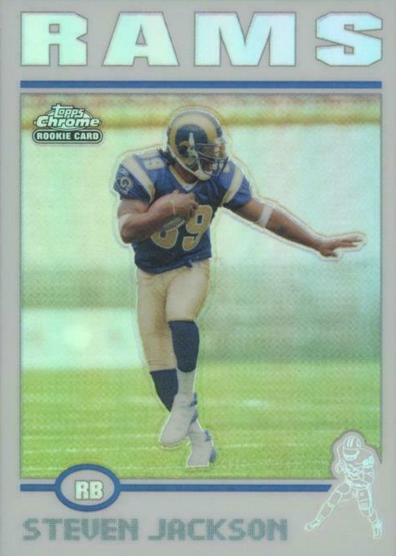 This card is 1 of 4 Steven Jackson's card variations in the 2004 Topps Chrome set being tracked by Sports Card Investor, including Base, Gold X-Fractor /279, and Black Refractor /100.