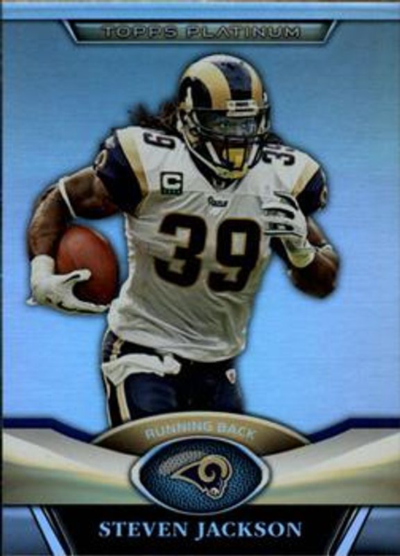 The Steven Jackson 2011 Topps Platinum #53 Base card is 1 of 9 Steven Jackson's card variations in the 2011 Topps Platinum set being tracked by Sports Card Investor, including Thick Stock, Green /499, Gold /50, Red /25, and Patch Autographs - Gold Refractor.