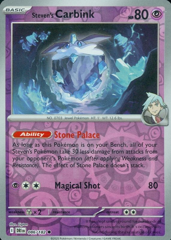 Pokemon STEVEN'S CARBINK 086/182 - Destined Rivals - Rev Holo - MINT