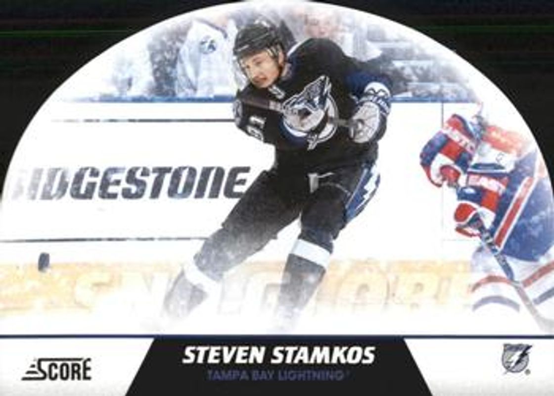 The Steven Stamkos 2010 Score #6 Snow Globe die-cut card is 1 of 12 Steven Stamkos' card variations in the 2010 Score set being tracked by Sports Card Investor, including #26 Base, #427 Base, #26 20th Anniversary, #427 20th Anniversary, and #427 French Back.