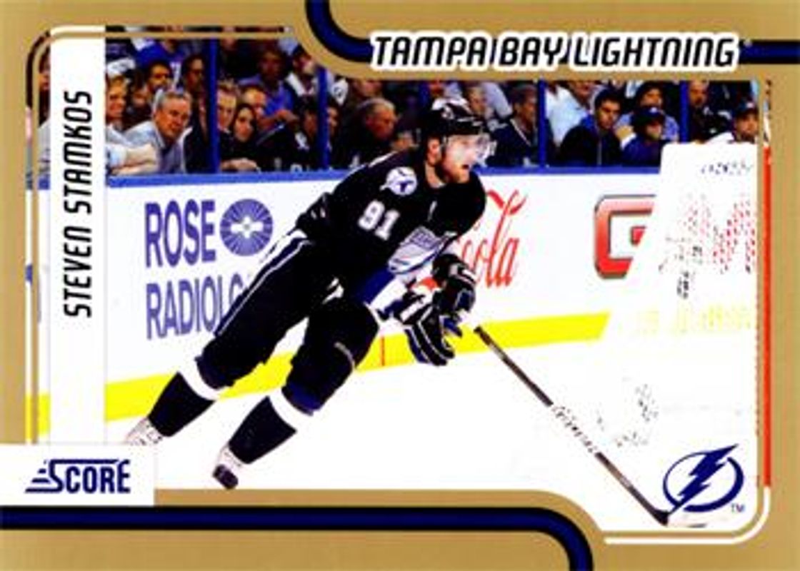 The Steven Stamkos 2011 Score #413 Gold Rush card is 1 of 14 Steven Stamkos' card variations in the 2011 Score set being tracked by Sports Card Investor, including #413 Base, #8 Base, #8 Black Ice, #413 Black Ice, and #8 Glossy.