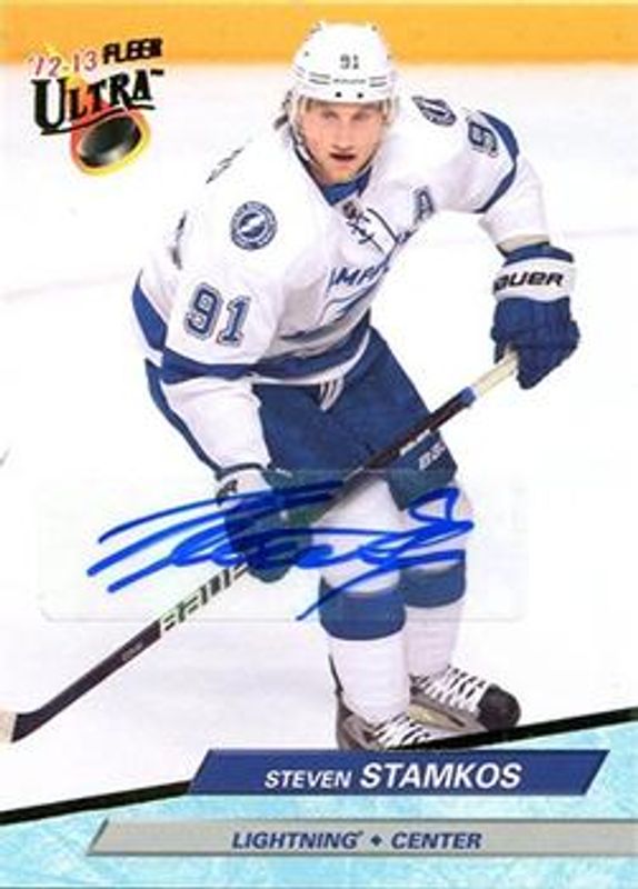 The Steven Stamkos 2012 Fleer Retro #92-23 1992 Ultra Autographs card is 1 of 29 Steven Stamkos' card variations in the 2012 Fleer Retro set being tracked by Sports Card Investor, including Base, Autographs, 1992 Ultra, 1993 Ultra, and 1993 Ultra Autographs.