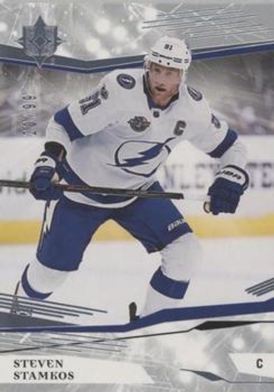 The Steven Stamkos 2017 Upper Deck Ultimate Collection #12 Base /99 card is 1 of 15 Steven Stamkos' card variations in the 2017 Upper Deck Ultimate Collection set being tracked by Sports Card Investor, including Auto Jersey, Gold Auto /50, Auto Patch /10, Onyx /10, and Onyx Auto /1.