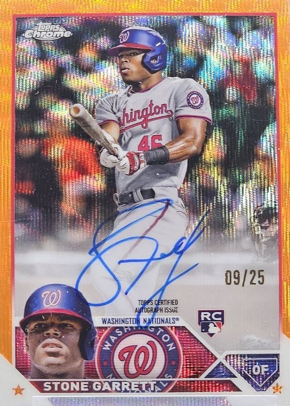 Stone Garrett /25 RC AUTO Orange Wave, 2023 Topps Chrome, Washington Nationals
