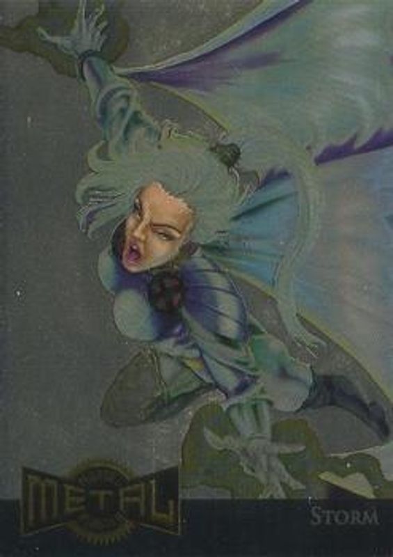 The Storm 1995 Marvel Metal #13 Gold Blasters card is 1 of 7 Storm's card variations in the 1995 Marvel Metal set being tracked by Sports Card Investor, including #119 Base, #135 Base, #119 Silver Flasher, #135 Silver Flasher, and #13 Metal Blasters.