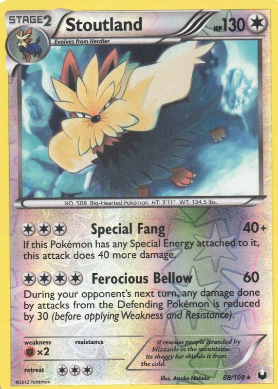 Stoutland 2012 Black & White: Dark Explorers #088/108 Reverse Holo RAW TCG (LIGHTLY PLAYED) Price Guide