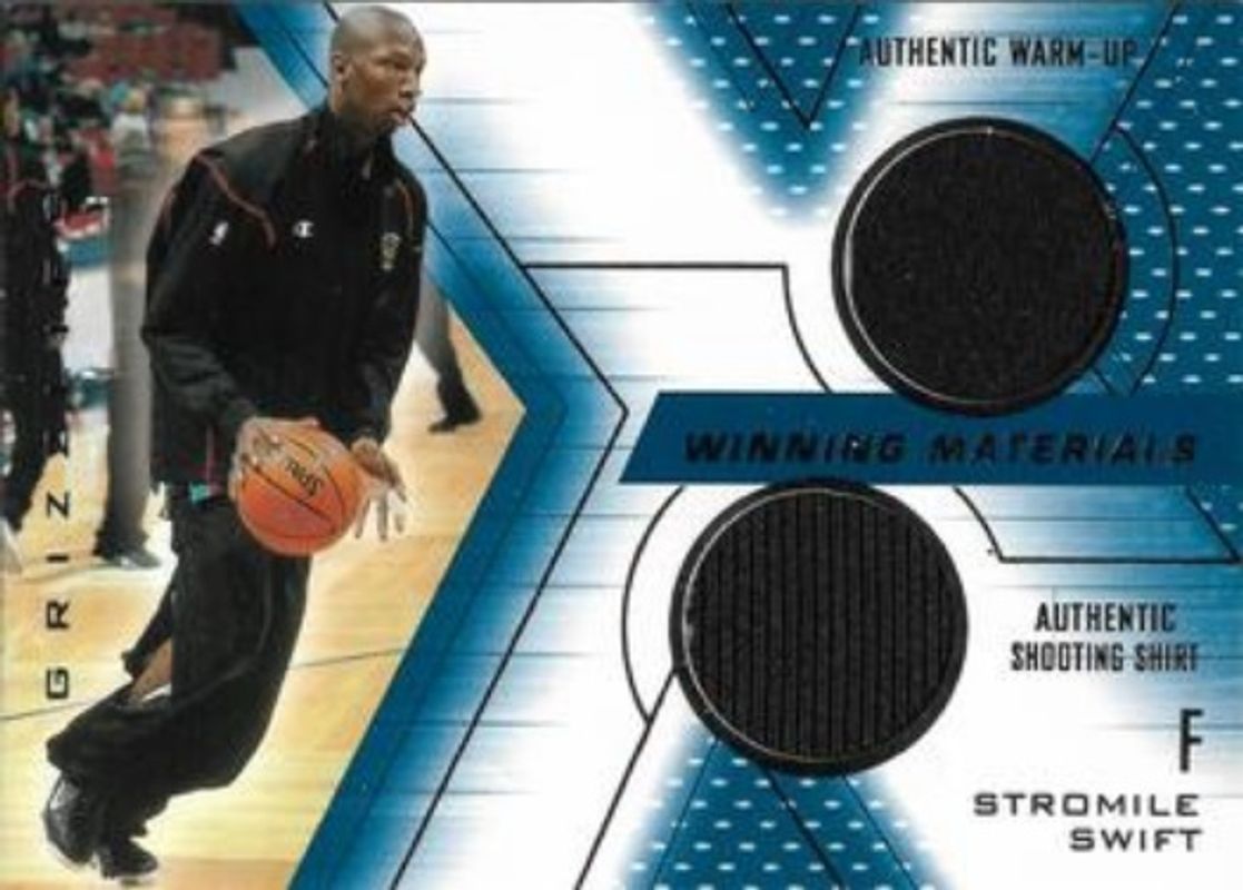 The Stromile Swift 2001 SPx #SS Winning Materials card is 1 of 3 Stromile Swift's card variations in the 2001 SPx set being tracked by Sports Card Investor, including Base, and Spectrum /25.