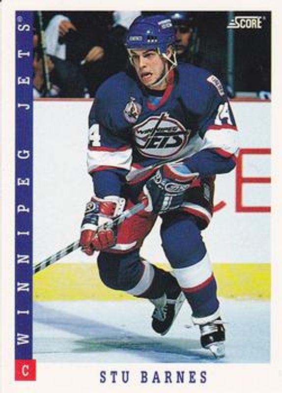 The Stu Barnes 1993 Score #380 Base card is 1 of 3 Stu Barnes' card variations in the 1993 Score set being tracked by Sports Card Investor, including Base, and Gold Rush.