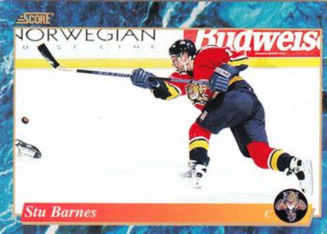 The Stu Barnes 1993 Score #644 Base card is 1 of 3 Stu Barnes' card variations in the 1993 Score set being tracked by Sports Card Investor, including Base, and Gold Rush.