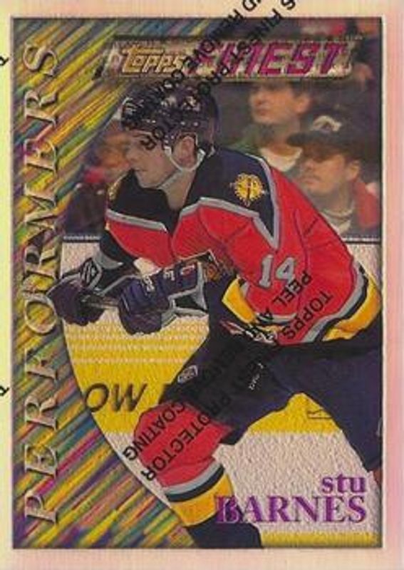 The Stu Barnes 1995 Topps Finest #68 Refractor card is 1 of 2 Stu Barnes' card variations in the 1995 Topps Finest set being tracked by Sports Card Investor, including Base.