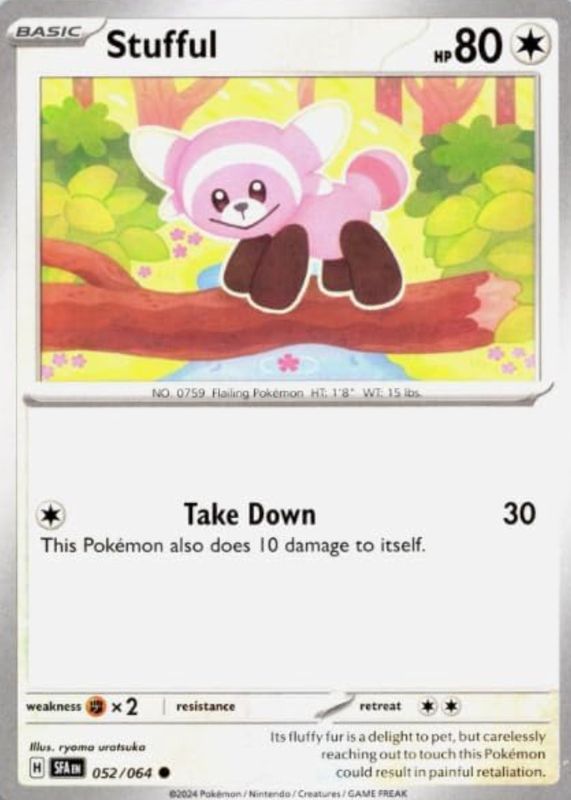 The Stufful 2024 Scarlet & Violet: Shrouded Fable #052/064 Base card in Raw TCG (Lightly Played) condition has not changed in price in the last 30 days.