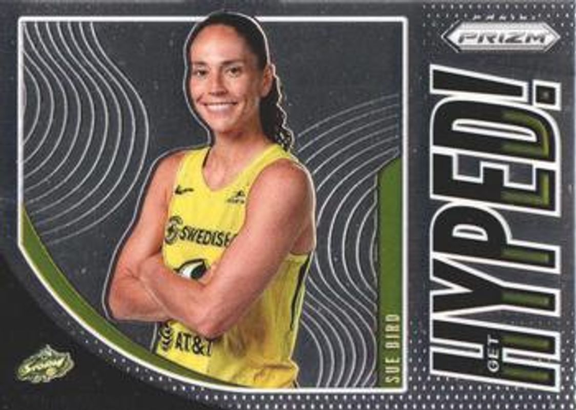 The Sue Bird 2020 Prizm WNBA #5 Get Hyped card is 1 of 61 Sue Bird's card variations in the 2020 Prizm WNBA set being tracked by Sports Card Investor, including Base, Green, Green Ice, Hyper, and Ice.
