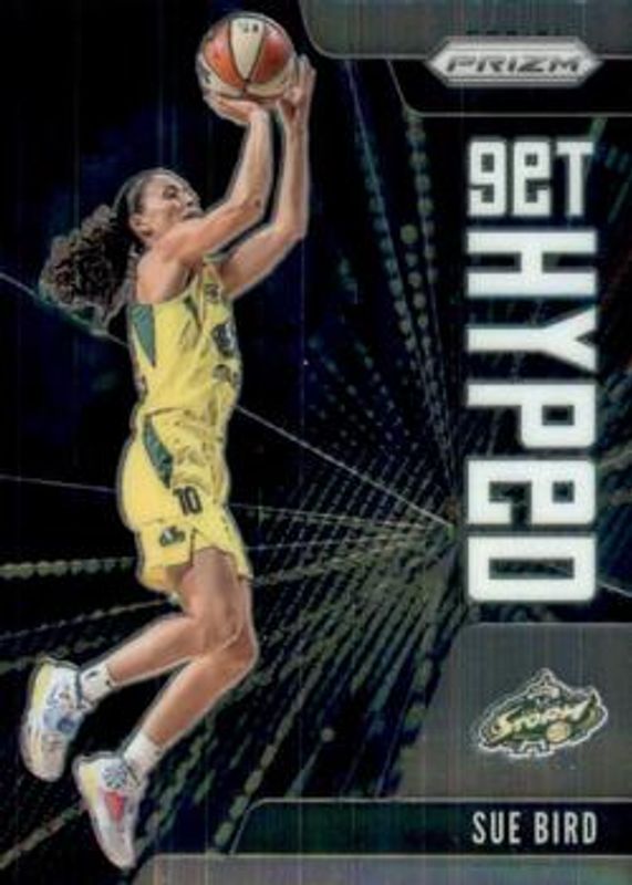 The Sue Bird 2021 Prizm WNBA #12 Get Hyped card is 1 of 72 Sue Bird's card variations in the 2021 Prizm WNBA set being tracked by Sports Card Investor, including Base, Green, Green Ice, Hyper, and Ice.