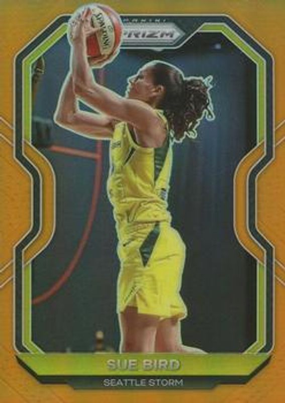The Sue Bird 2021 Prizm WNBA #65 Orange /50 card is 1 of 72 Sue Bird's card variations in the 2021 Prizm WNBA set being tracked by Sports Card Investor, including Base, Green, Green Ice, Hyper, and Ice.