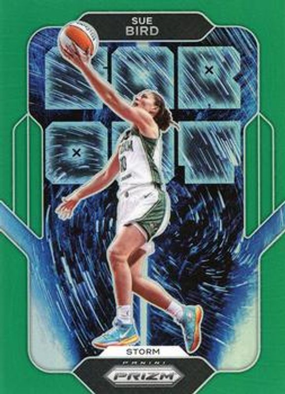 The Sue Bird 2022 Prizm WNBA #8 Far Out - Green card is 1 of 94 Sue Bird's card variations in the 2022 Prizm WNBA set being tracked by Sports Card Investor, including #157 Base, #154 Base, #154 Green, #157 Green, and #154 Green Ice.