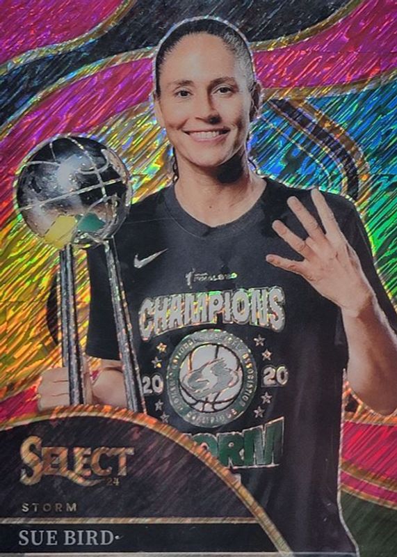 The Sue Bird 2024 Select WNBA #244 Courtside Pink Shimmer FOTL /3 card in Raw condition has not changed in price in the last 30 days and was last sold for $180.27 .