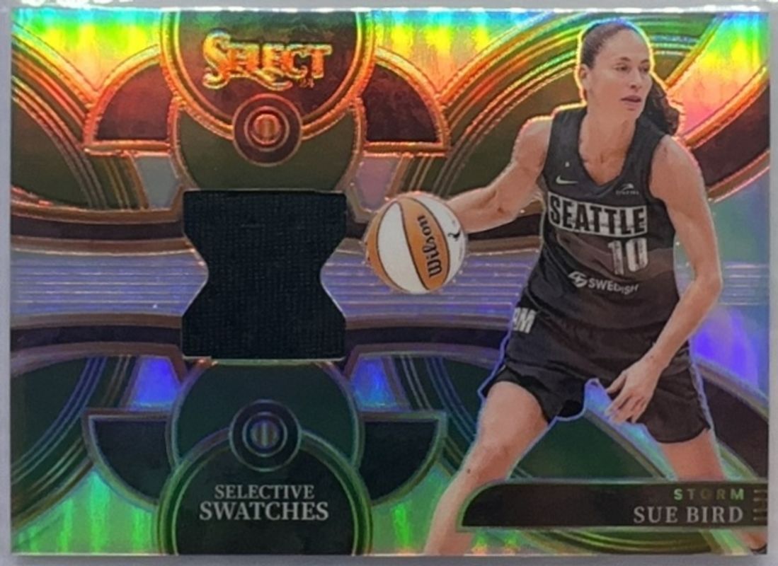 The Sue Bird 2024 Select WNBA #SW-SB Selective Swatches card is 1 of 155 Sue Bird's card variations in the 2024 Select WNBA set being tracked by Sports Card Investor, including #30 Base, #244 Base, #150 Base, #244 Base Green Ice, and #30 Base Green Ice.