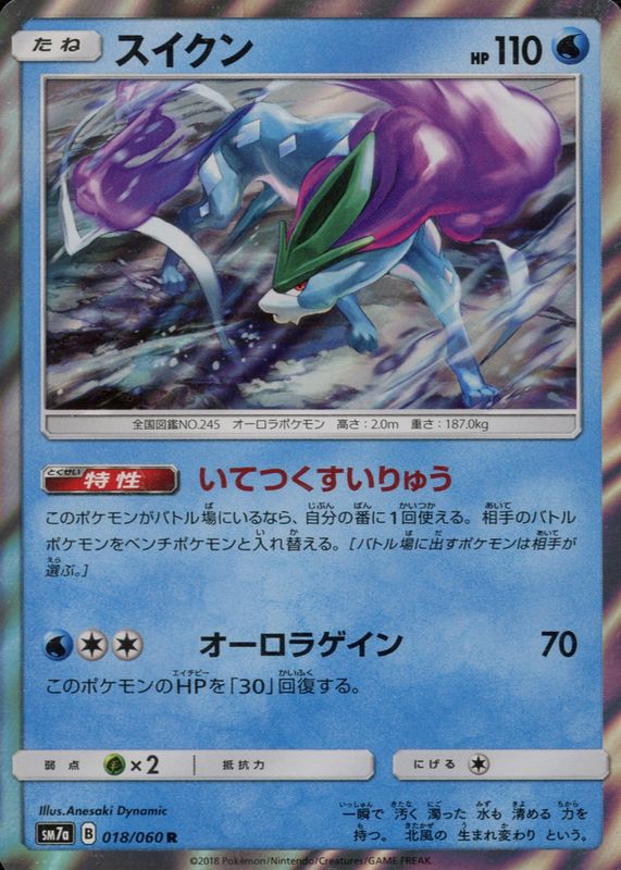 Suicune 2018 Japanese Sun & Moon: Thunderclap Spark #018/060 Holo RAW TCG (LIGHTLY PLAYED) Price Guide